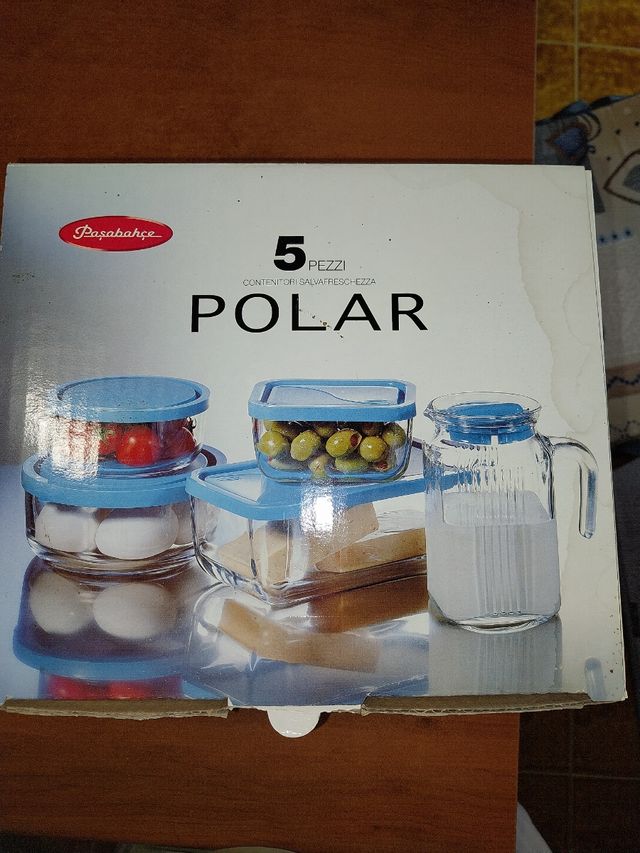 set 5 pezzi Polar 4 contenitori in vetro salva freschezza 1 caraffa in vetro. rimanenze di magazzino.