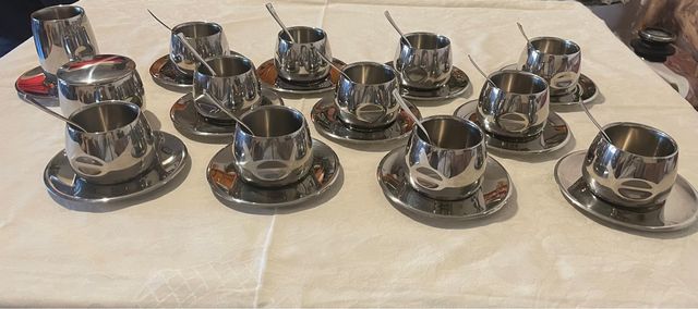 Set da caffè AMC da 11 composto da 11 tazze caffè 12 piattini 11 cucchiaini 1 zucchera 1 lattiera Usate un paio di volte. In ottime condizioni
