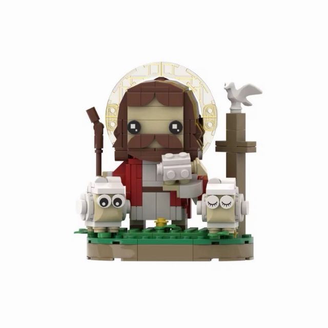 Dettagli del prodottoSet di costruzioni a tema religioso con figura di Gesù, pecorelle e colomba.