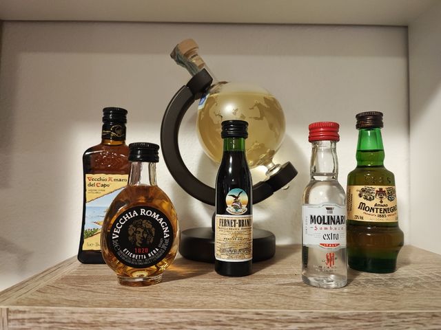 Dettagli del prodottoSet da vetrina: grappa invecchiata in ampolla e set di superalcolici in miniatura, ideali anche per collezioni o riproduzioni.