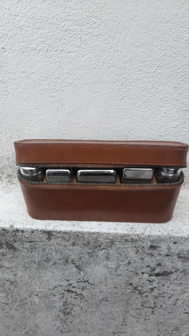 Dettagli del prodottoBellissimo set da viaggio vintage, in pelle marrone. Perfetto per un regalo o per un utilizzo personale. Le foto sono parte integrante della descrizione