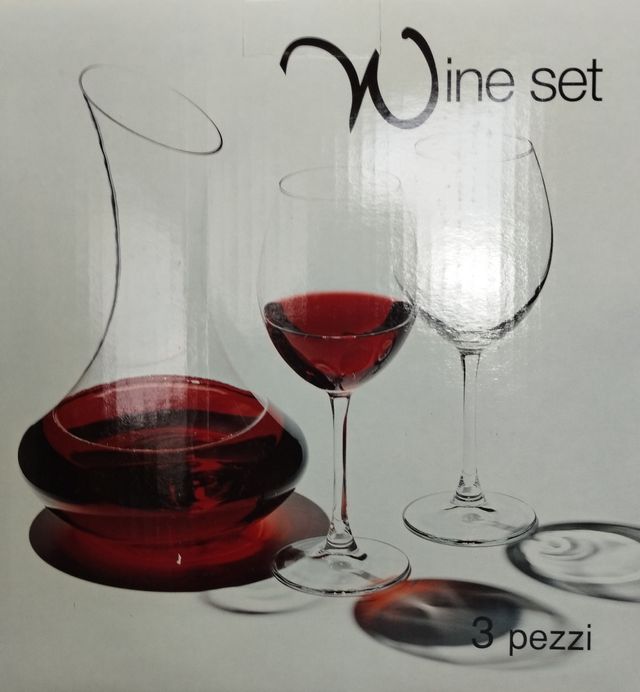 Dettagli del prodottoSET DECANTER VINO CON 2 BICCHIERI CRISTALLO. VENDITA PER CESSAZIONE ATTIVITA' Misure del prodotto