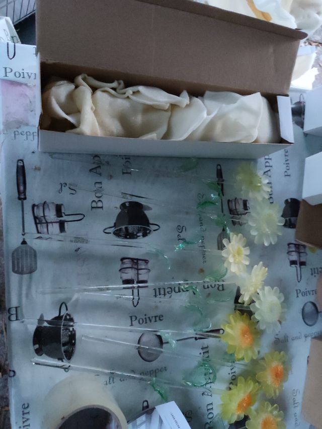 set di 10 rose e 10 girasoli colori misti, quindi 20 fiori di vetro in tutto, incartati singolarmente