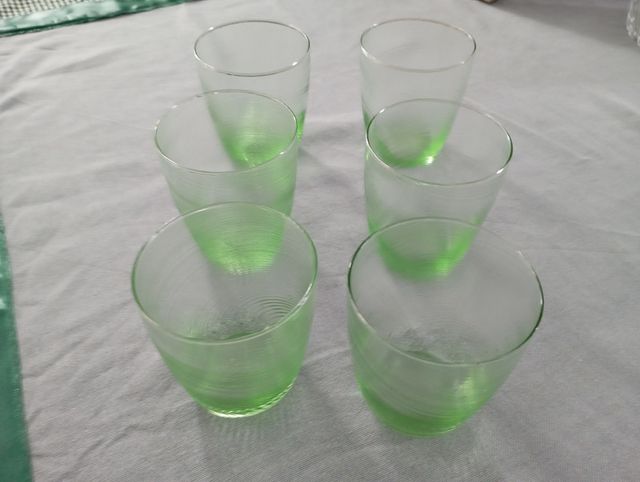 6 bicchieri verdi da acqua con zigrinatura a cerchi concentrici