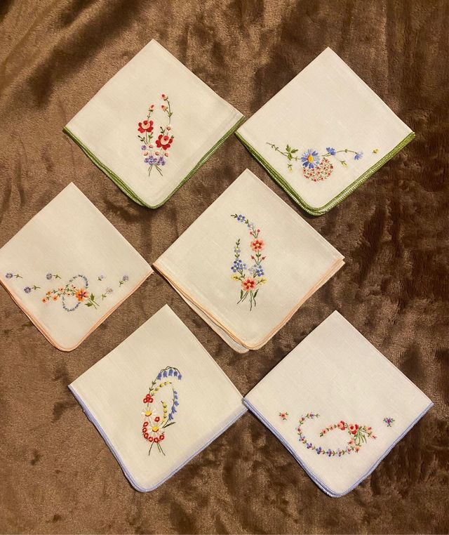 Set di 6 Fazzoletti Cotone Ricamati a Mano