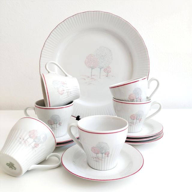 graziose tazzine da caffè con profilo rosso e delicato decoro prodotte dalla Julmenau negli anni 70