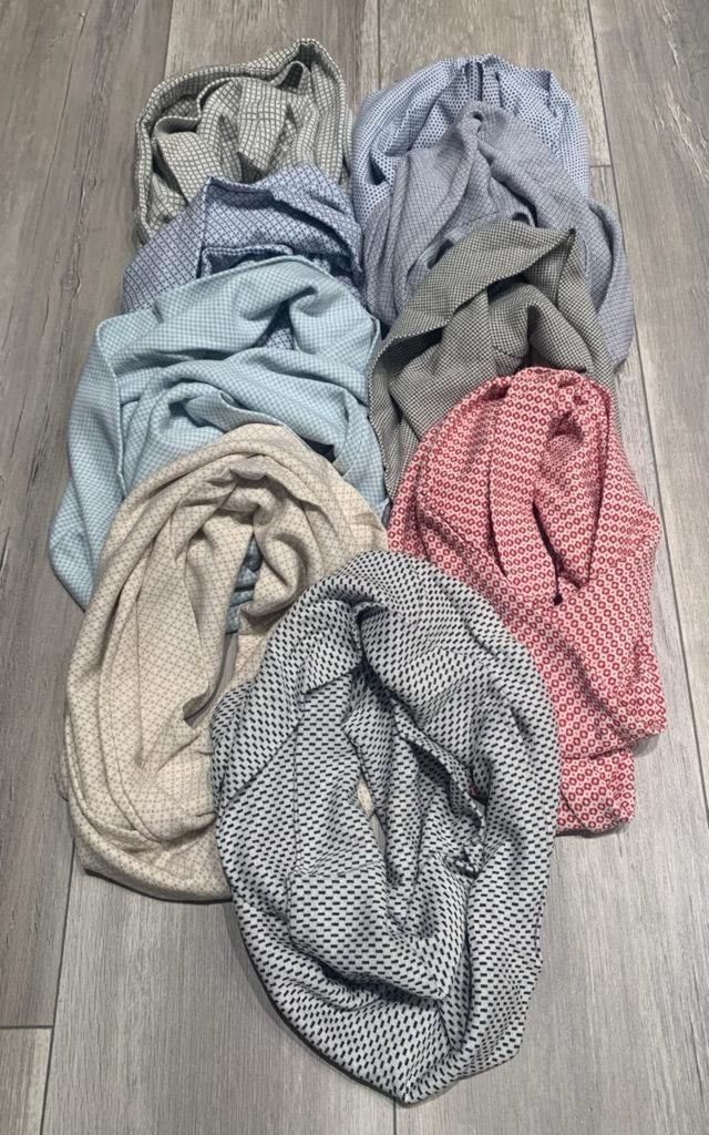 Set di 9 Sciarpe ad Anello in maglia di Viscosa Poliestere diversi colori e microdisegni Made in Italy