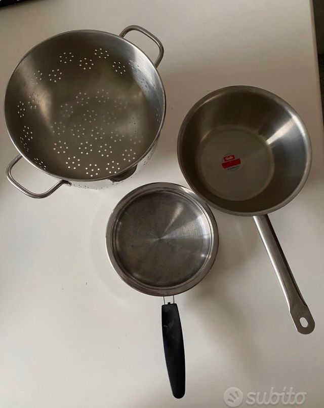 Pentola standard, pentolino e scolapasta. Se siete interessati a una sola di queste scrivetemi