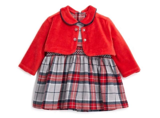 Vestito in caldo cotone in tartan, apertura sul retro con bottoni a pressione e sul fondo del body. Nuovo, con cartellino.
