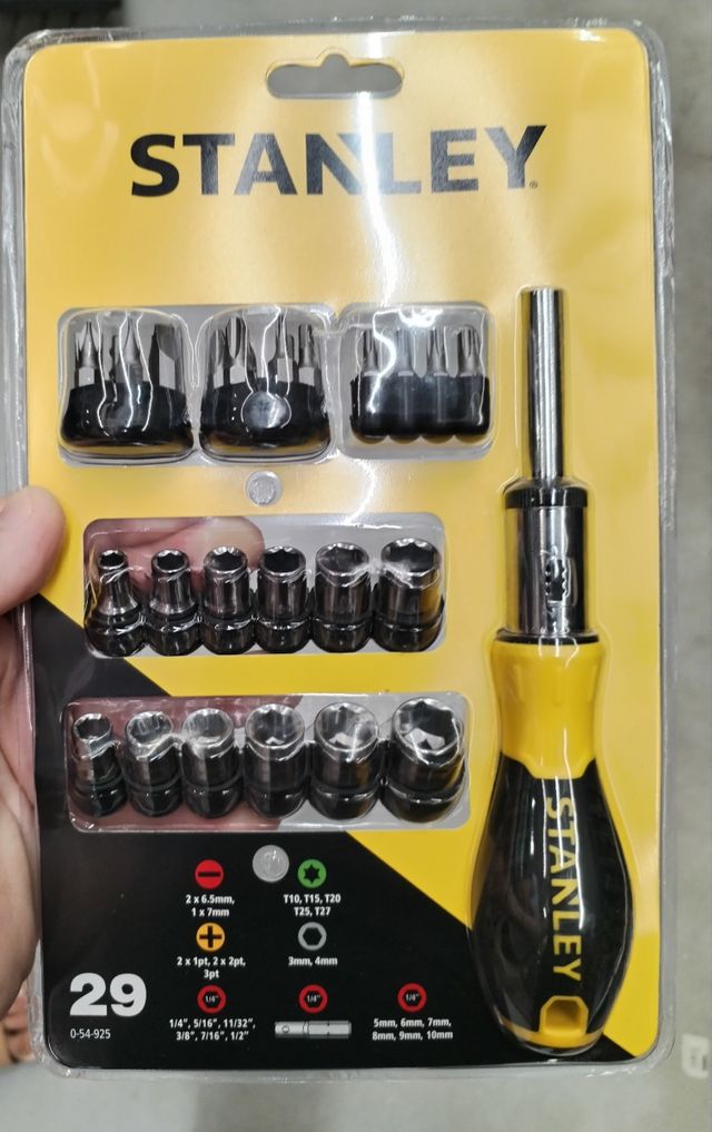 Dettagli del prodottoSet di giraviti a cricchetto Stanley con 29 pezzi.