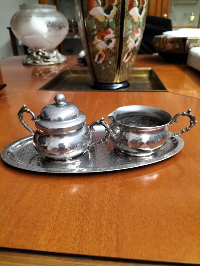 Set in silver pladed zuccheriera e lattiera il piattino misura 21×11 CM vintage con piccoli segni del tempo e da lucidare