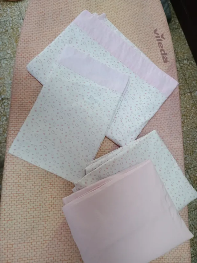Dettagli del prodottoSet di lenzuola per lettino, marca Prenatal, con un grazioso motivo a cuoricini rosa su sfondo bianco. Il set include federa, lenzuolo e due lenzuola sotto con angoli