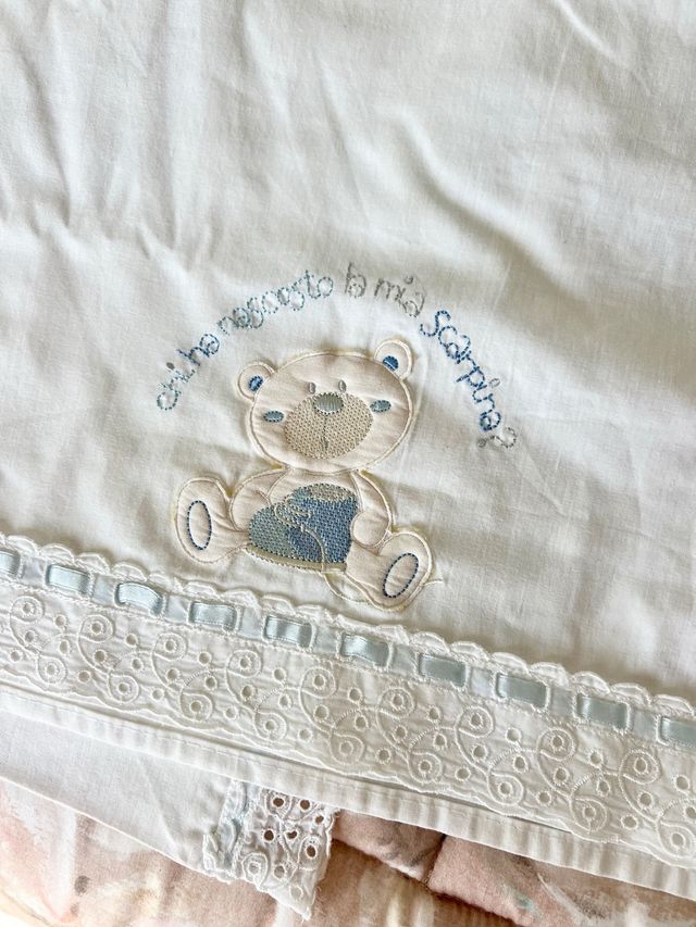 set lenzuola per lettino in ottime condizioni. Lavato un paio di volte ma non utilizzato perchè il pupo preferisce il lettone.