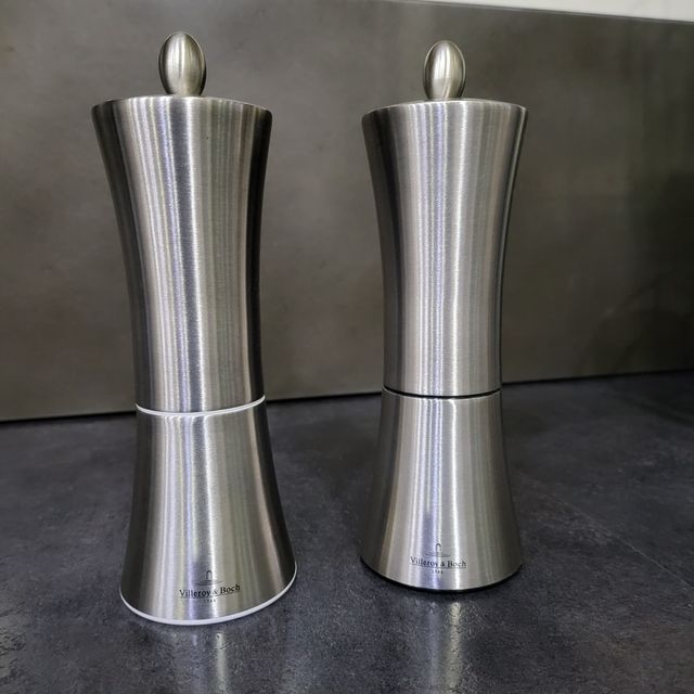 Set macina sale e pepe Villeroy & Boch in acciaio satinato. Misure 20x6,5 cm. Nuovo, mai usato.
