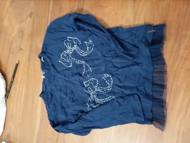 Set di tre magliette a manica lunga per bambina, di colore blu scuro. - Decorate con fiocchi scintillanti. - Orlo inferiore in tulle nero.