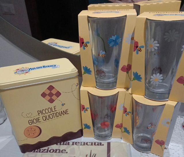 Set Mulino Bianco: Biscottiera e 4 Bicchieri