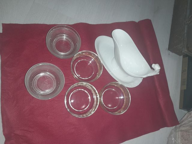 Porta salsa, 3 coppette da macedonia/gelato con righe e 4 coppette da macedonia/gelato.