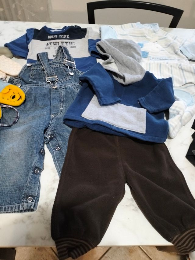 1 pigiamone 1 salopette 2 maglie 1 pantaloncino 6-9 mesi Prezzo per tutto