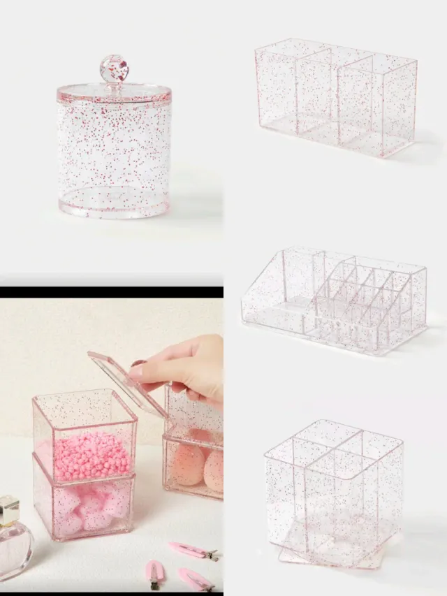 Set organizer make-up glitter rosa