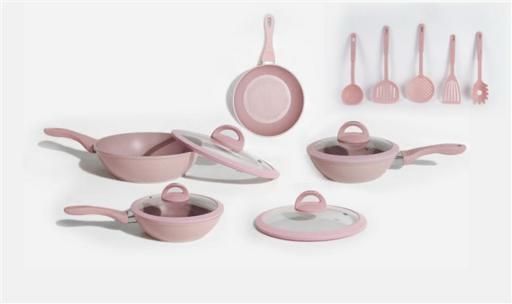 Set Padelle Rosa in Pietra lavica con kit mestoli