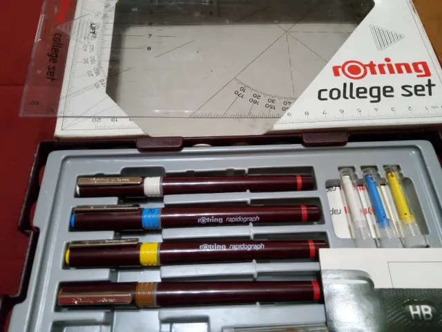Penne stilografiche Rotring College set Rapidograph, eccellenti condizioni, misure 0.25 0.35 0.5 0.70