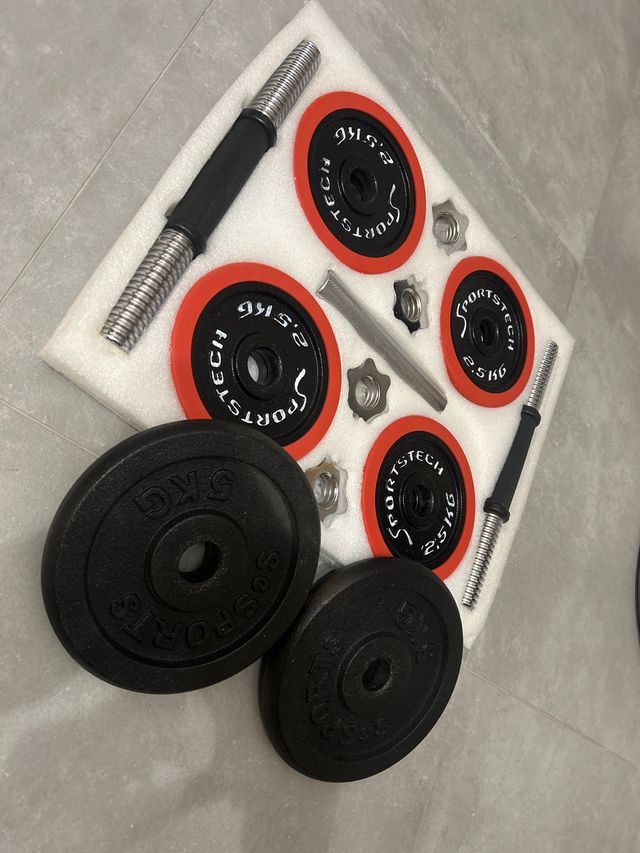 Dettagli del prodottoSet di pesi gommati con manubri in ferro.