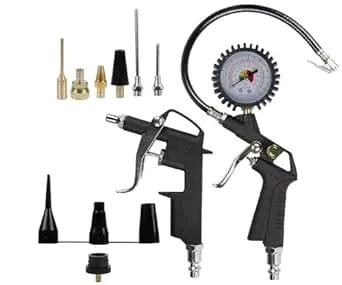 Dettagli del prodottoSet composto da una pistola ad aria compressa e vari adattatori.