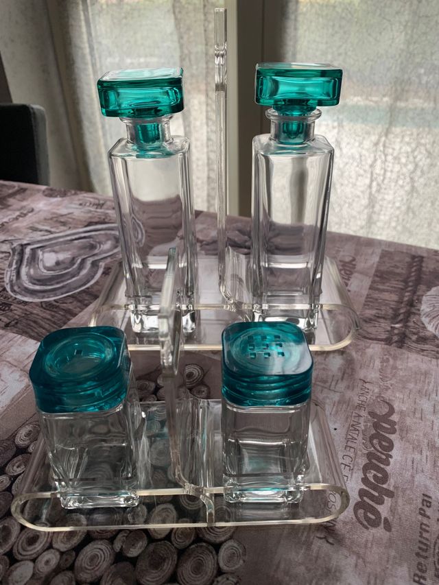 Set completo in vetro Porta olio e aceto Porta sale e pepe Mai usato