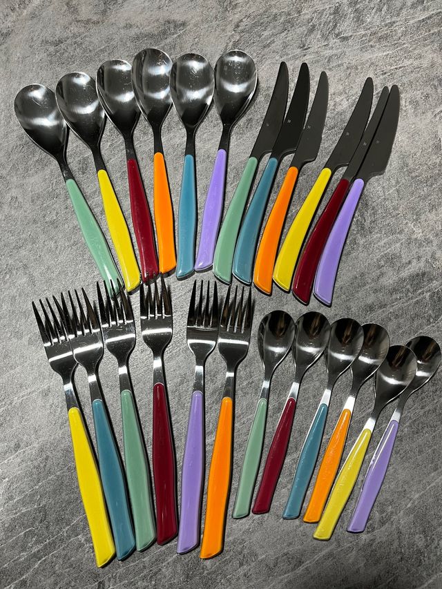 6 cucchiai, 6 forchette, 6 coltelli, 6 cucchiaini. Mai usati tot 24 pezzi