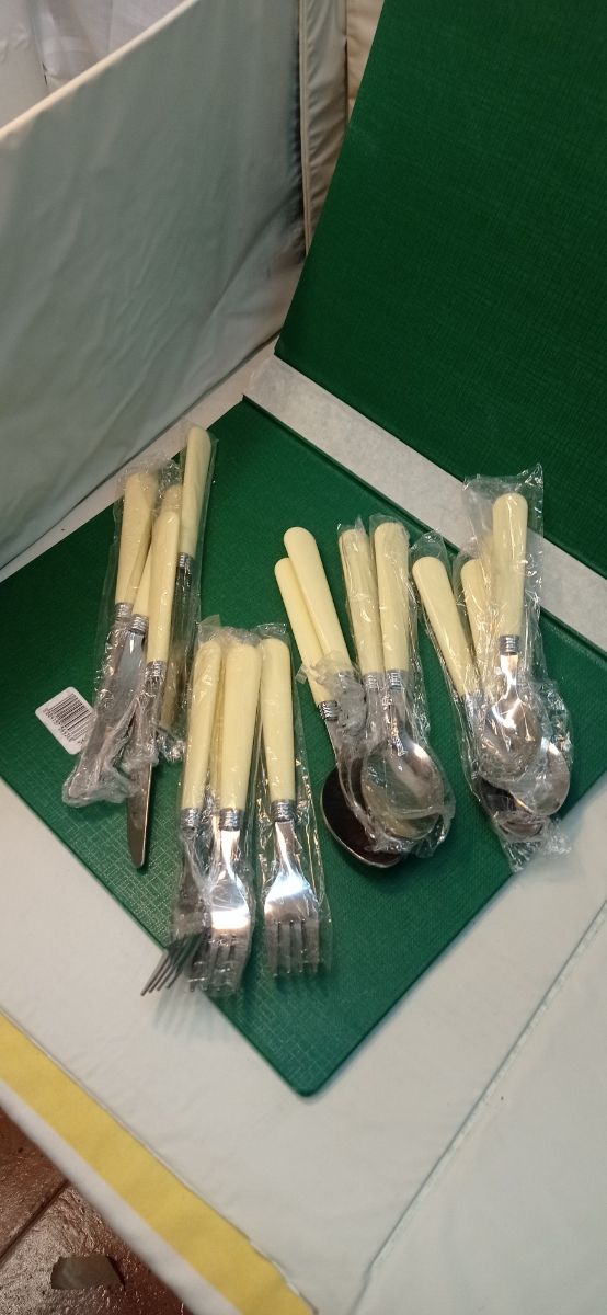Dettagli del prodottocome foto set posate da 4 vintage manico in plastica bianco nuove mai usate Misure del prodotto