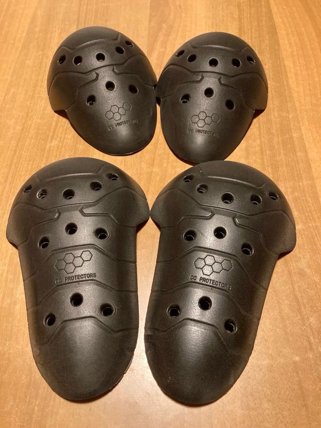 Dettagli del prodottoSet di protezioni per moto, adatte per spalle, gomiti e/o ginocchia. Realizzate in materiale resistente e flessibile. Livello 1, T+ e T-