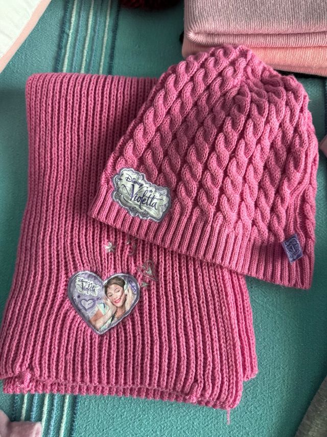 Dettagli del prodottoSet coordinato composto da sciarpa e berretto rosa, con dettagli a tema Violetta.