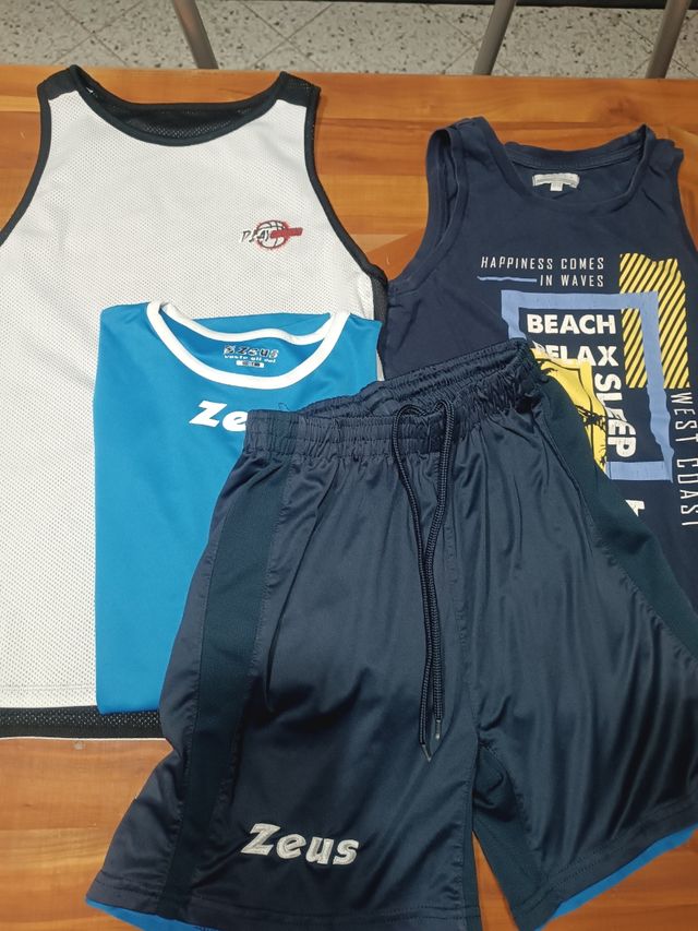 - Pantaloncini blu scuro con laccetti e logo Zeus.