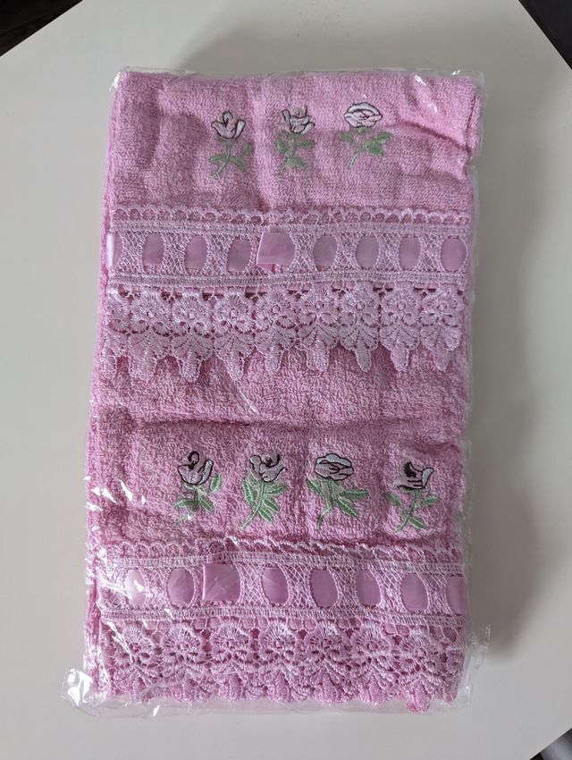 Set spugna ricamato in Puro Cotone da 2 pezzi: 1 asciugamano 60x110 1 asciugamano ospite 60x40 Nuovo