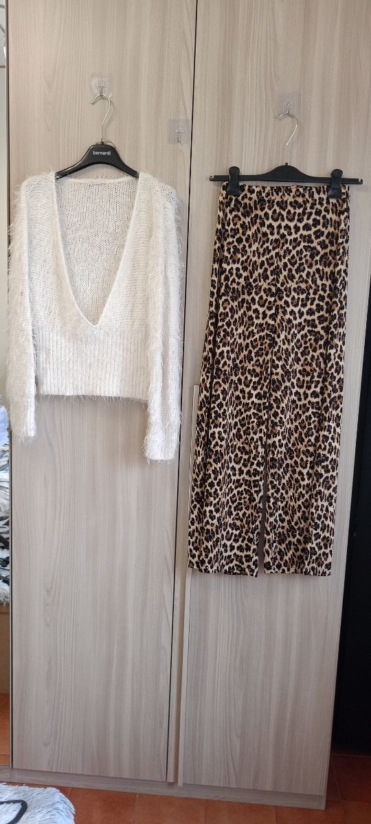 Set Taglia S Pantalone Maculato e Maglione Crop