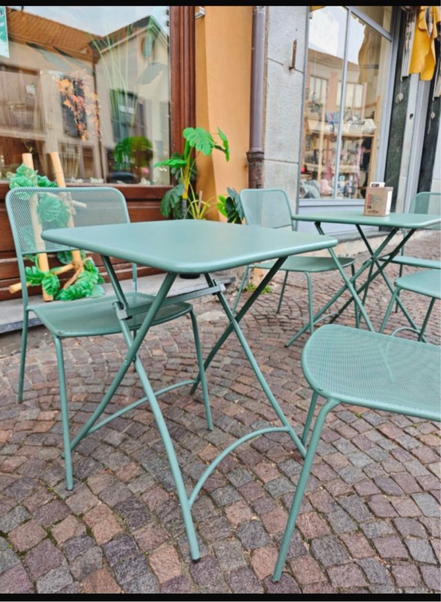Dettagli del prodottoSet di tavoli e sedie da esterno, perfetto per creare un angolo accogliente.