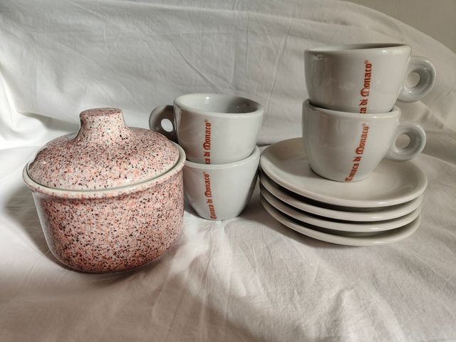 Set tazzine da caffè + zuccheriera rosa muschiata. Mai usate