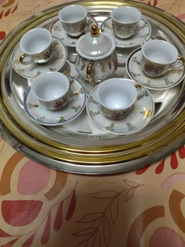 Dettagli del prodottoElegante set di tazzine da caffè in porcellana, perfetto per occasioni speciali o come pezzo da collezione.