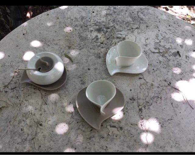 Dettagli del prodottodue tazzine con piattino, zuccheriera con piattino e cucchiaino. Ancora imballato . (Coperchio scatola macchiato) Misure del prodotto