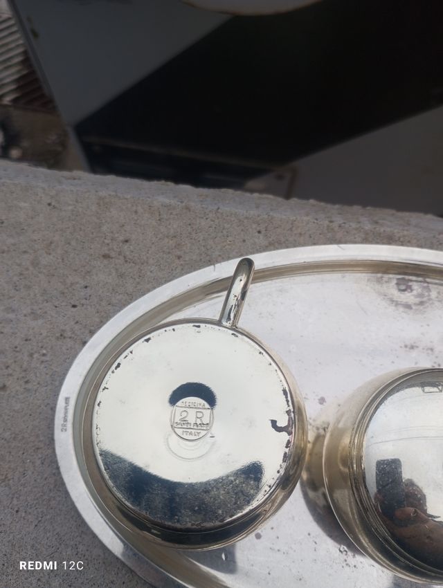 Elegante set composto da tazzine e zuccheriera, realizzato in argento e porcellana. - Design raffinato. - Materiali di pregio. - Made in Italy.