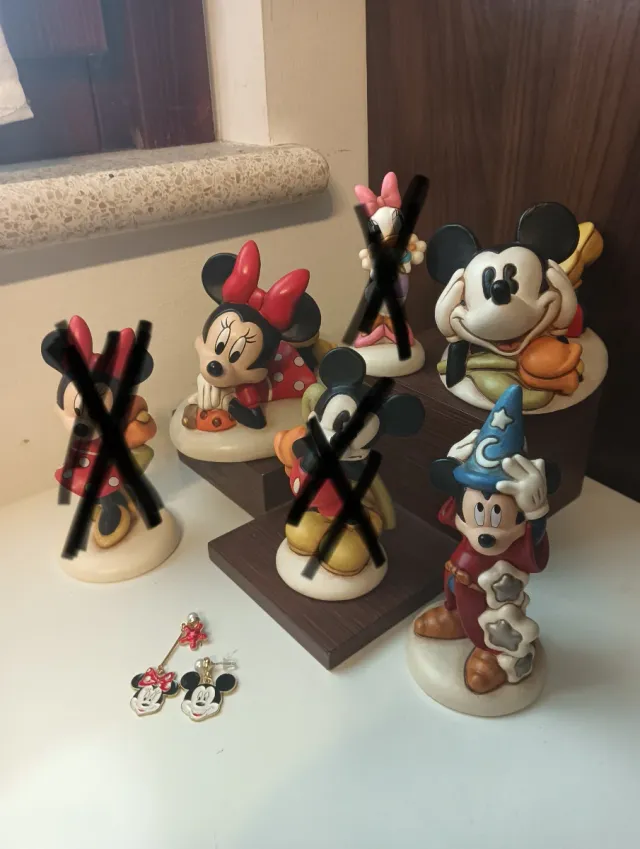 Dettagli del prodottoSet di statuine Disney Thun. 3 pezzi in perfette condizioni, 1 Minnie sdraiata, 2 Topolino, uno sdraiato e l' apprendista stregone. Non ci sono rigature o sbeccature. Orecchini in regalo