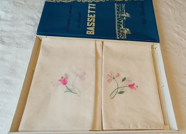Tovaglia + 6 tovaglioli puro lino ricamo a mano