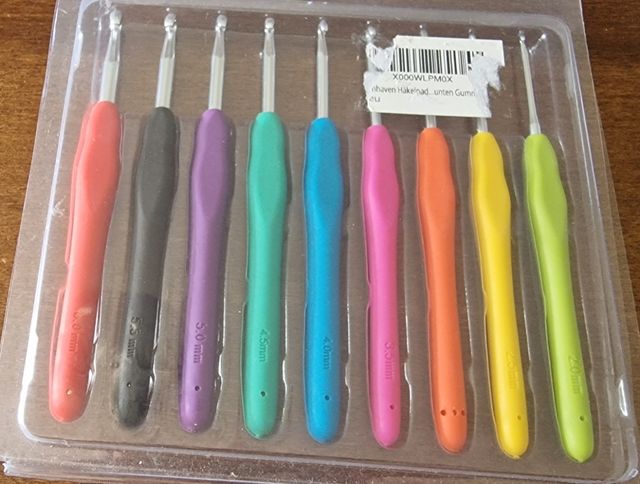 Set di nove uncinetti per crochet numerazione da 2 a 6 mm., nuovi in blister, con astuccio in morbido silicone colorato, molto ergonomici non stancano.