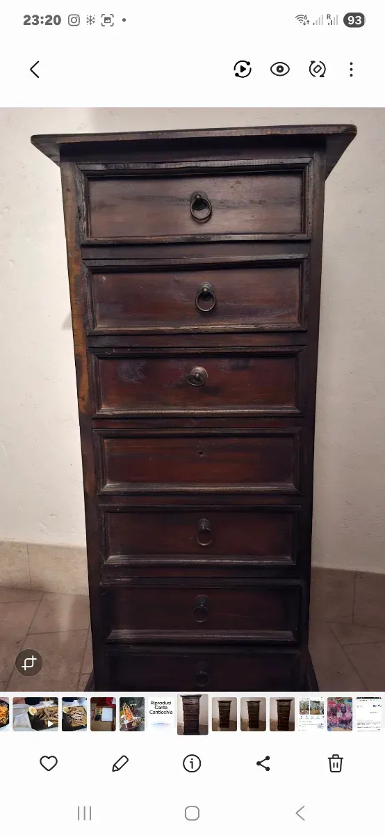 Dettagli del prodottoElegante settimino antico in legno scuro, perfetto per aggiungere un tocco di classe alla tua casa.