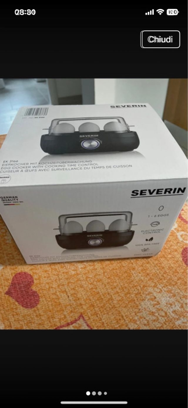 Cuoci uova Severin usato una sola volta, in perfette condizioni. - Modello EK 3166 - Capacità 1-4 uova - Controllo elettronico del tempo di cottura - Design tedesco