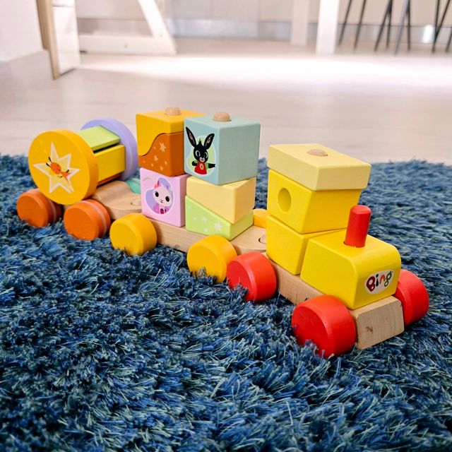 Dettagli del prodottoTrenino Trainabile in Legno di Bing ed i suoi amici in ottime condizioni. I vagoni possono essere staccati ed utilizzati singolarmente. Ricco di giocabilità, con tante formine da impilare. Spedizione veloce ed imballaggio accurato.