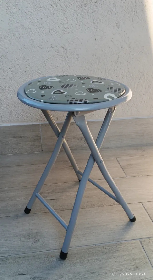 Sgabello pieghevole grigio con fantasia cuori