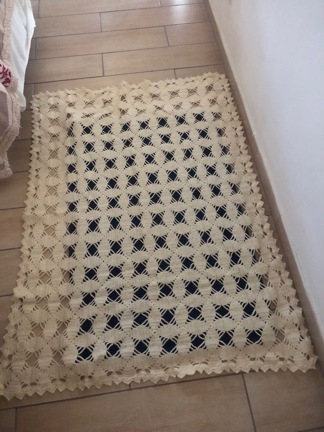 fatto a mano all'uncinetto, con un motivo geometrico traforato e bordo decorativo. - Colore: beige - Materiale: cotone - Dimensioni: M 122-102 cm