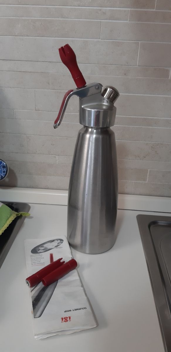 sifone per spume Isi gourmet da 1 litro. usato poco ,ma ho perso il portacapsule,che si puo acquistare online .