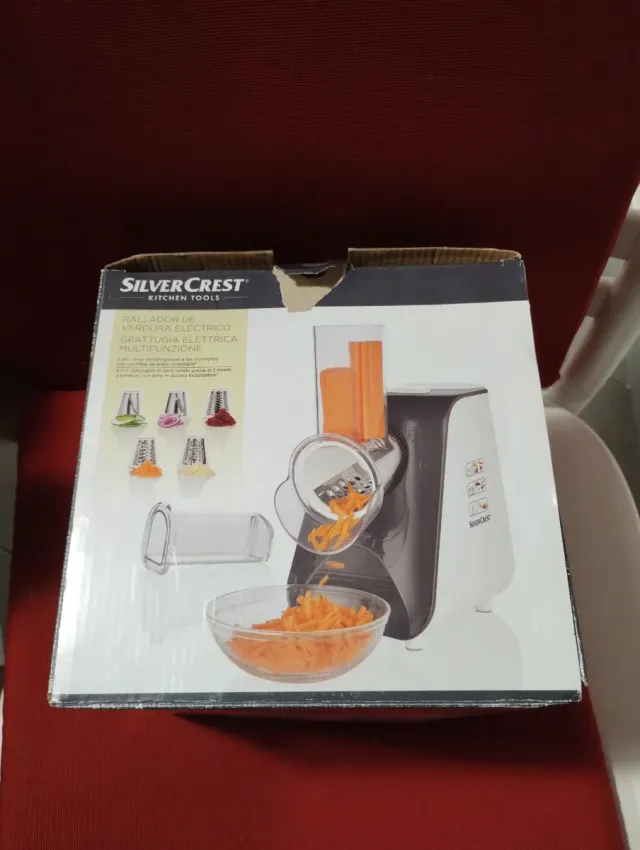 Dettagli del prodottoGrattugia elettrica SilverCrest, ideale per preparare verdure.